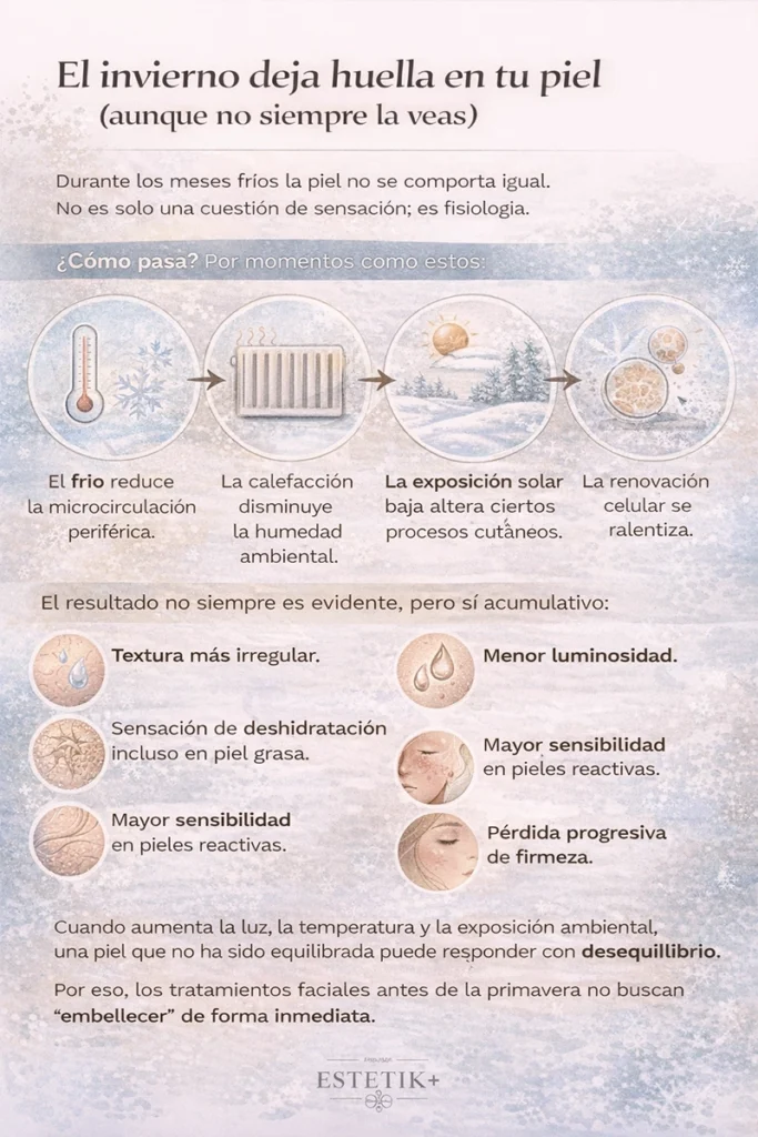 Durante los meses fríos la piel no se comporta igual. No es solo una cuestión de sensación; es fisiología.